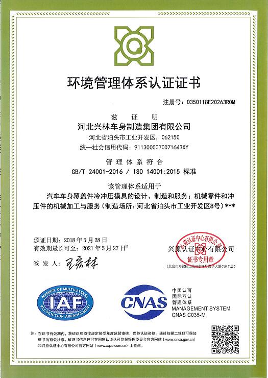 在公司領(lǐng)導(dǎo)大力支持、各部門員工的不懈努力下,經(jīng)過認(rèn)證公司專家的全面、嚴(yán)格,細(xì)致的指導(dǎo)和審核,確認(rèn)我公司環(huán)境管理體系符合ISO14001:2015的標(biāo)準(zhǔn)要求,并于2018年5月28日,向我公司正式頒發(fā)過ISO14001:2015環(huán)境管理體系認(rèn)證。ISO14001是ISO14000系列標(biāo)準(zhǔn)的龍頭標(biāo)準(zhǔn)。這個(gè)標(biāo)準(zhǔn)的核心是規(guī)定了環(huán)境管理體系的要素(共五個(gè)部分,17個(gè)要素),也就是說對(duì)環(huán)境管理體系提出規(guī)范性要求,一切組織的環(huán)境管理體系必須遵照本標(biāo)準(zhǔn)的要素、規(guī)定和模式。